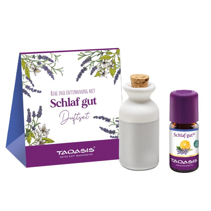 The popular classic to fall asleep in a set with the sleep well composition 10 ml and a white clay jug.